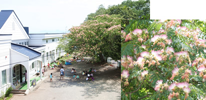 今、園庭では、きれいなピンク色の